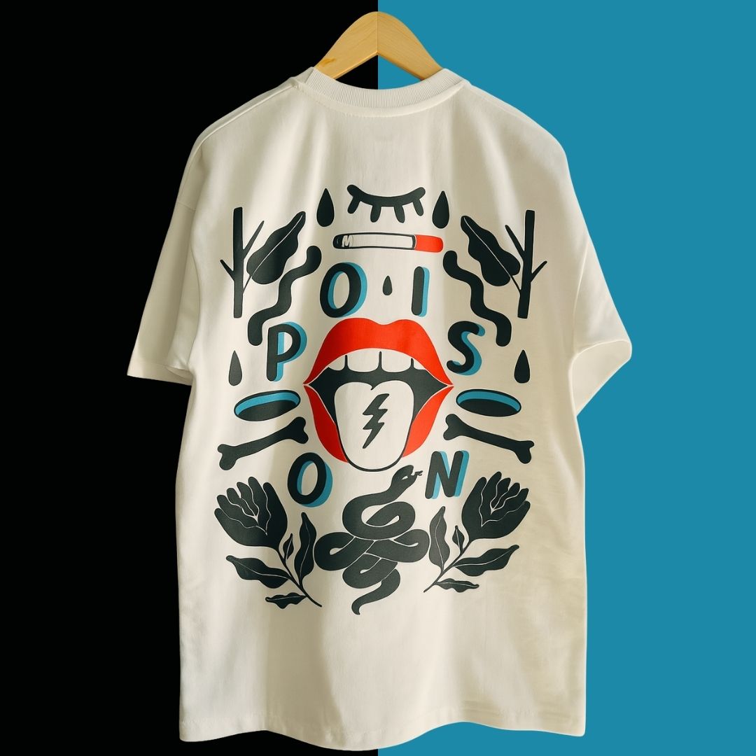 Crafted from high-quality, breathable cotton, the “Venom Drip” offers an oversized fit that drapes just right — giving you that effortlessly cool, relaxed silhouette. The neutral beige hue makes it a wardrobe essential, pairing seamlessly with anything from distressed jeans to cargo pants or even bold statement pieces.